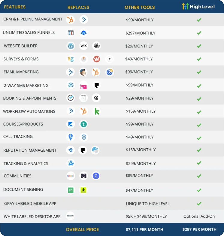 Stop paying for multiple platforms that barely talk to each other. With Turnkey AI, you get everything you need to automate, market, and grow, all in one place.